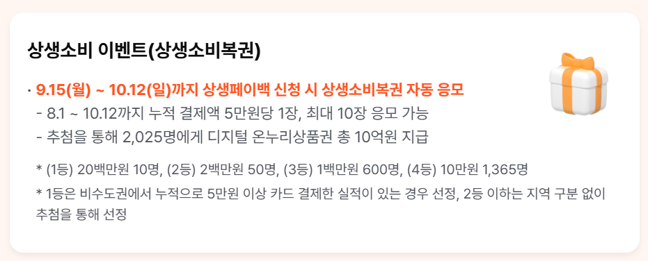 2025년 10월 12일까지 상생페이백을 신청한 소비자는 자동으로 응모되며,