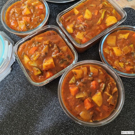 잠시 식히고 나서 한번 먹을 분량으로 소분하여 담아주기만 하면 끝입니당!!